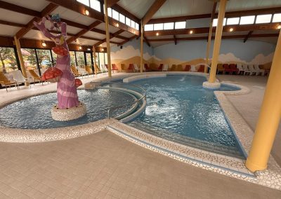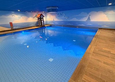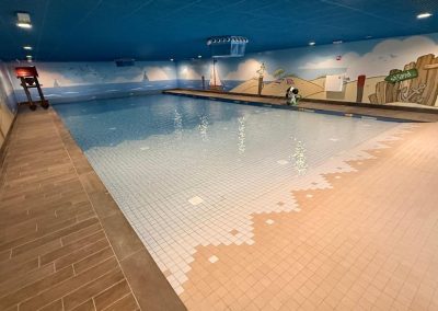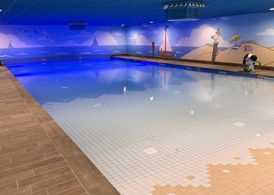 In maart 2026 opende het nieuwste themapark van Nederland feestelijk zijn magische poorten. In De Tovertuin stap je zó de vrolijke speelwereld van Woezel & Pip binnen, 2,5 hectare themapark en 160 gethematiseerde accomodaties. Avonturenpark De Tovertuin heeft naast een indoorspeeltuin met 3000 m2 speelplezier, een gerenoveerd binnenzwembad ‘De Plons’ waar wij het tegelwerk in opdracht van Van Hoorne Studios hebben mogen verzorgen.